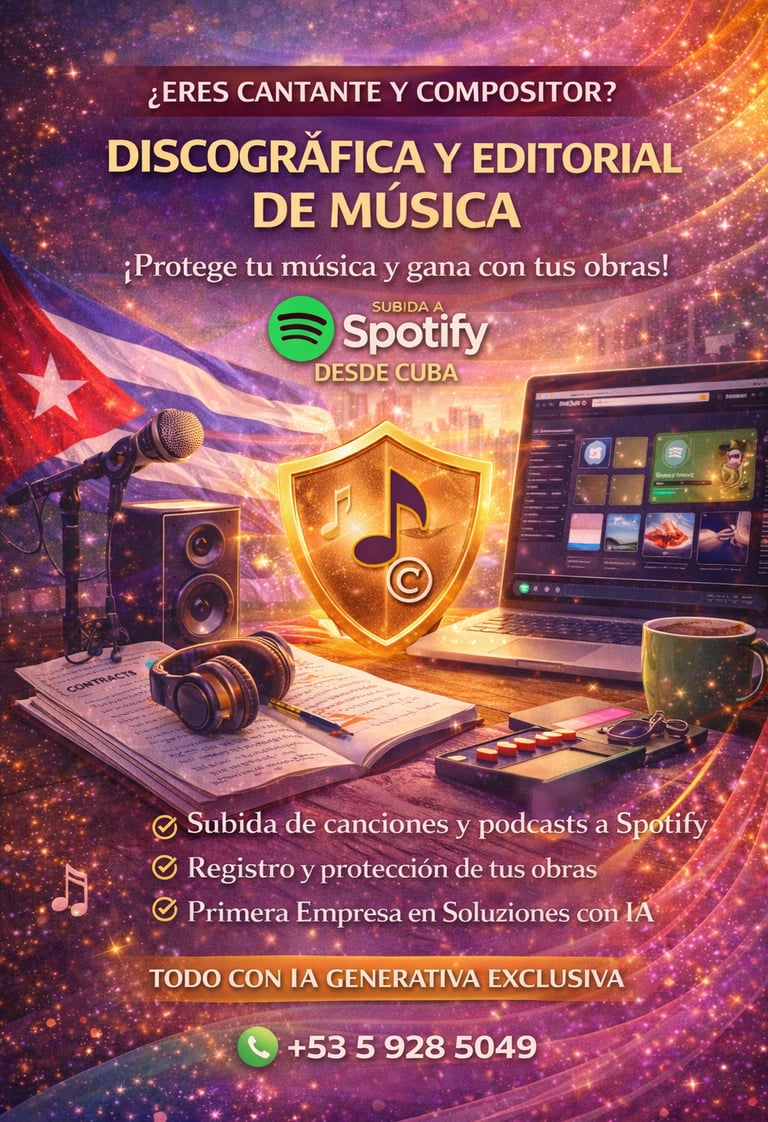 Producción musical, diseño, marketing y representación artística para impulsar la cultura cubana.